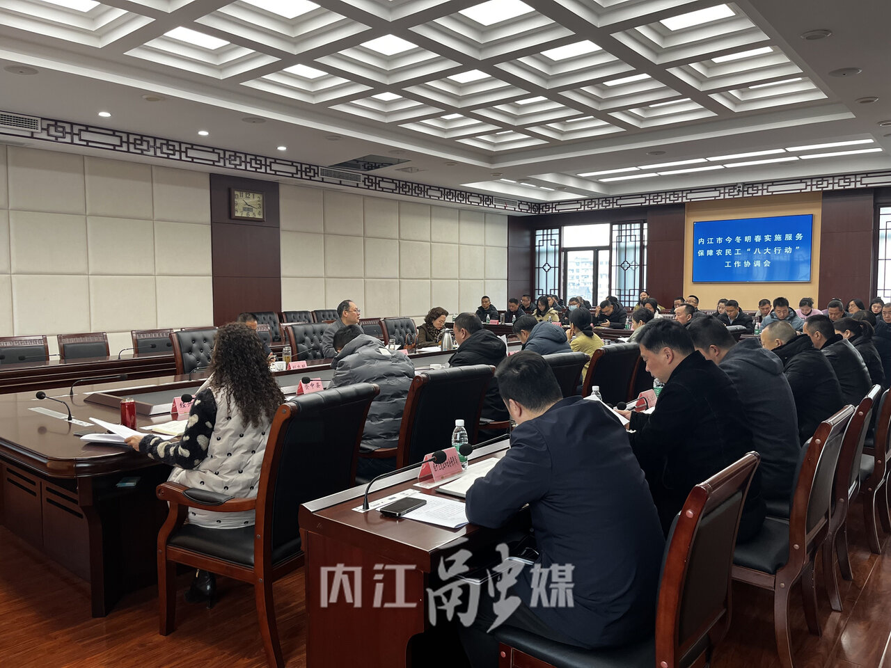 12月18日,记者从市农民工工作领导小组办公室获悉,为切实做好农民工服务保障工作,促进返乡农民工留内就业,从本月起至明年2月,我市将聚焦“就业内江 甜蜜生活”主题,以就业促进、返乡创业、示范引领、走访慰问、旅途暖冬、欢喜过年、权益维护和温暖政务等工作为重点,组织开展今冬明春服务保障农民工“八大行动”,扎实做好农民工工作,着力解决好农民工急难愁盼问题,增进农民工福祉,切实增强广大农民工的获得感、幸福感、安全感。