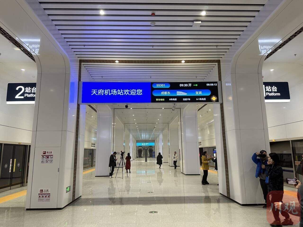 作为西部最大的国际航空枢纽,天府机场在设计规划之初,就提出了“无缝换乘”的概念,机场将接入9种交通工具;成自宜高铁的到来,补齐了“高铁”这一空白,实现了“空铁一体化,旅客零换乘”,将为旅客出行提供极大便利。