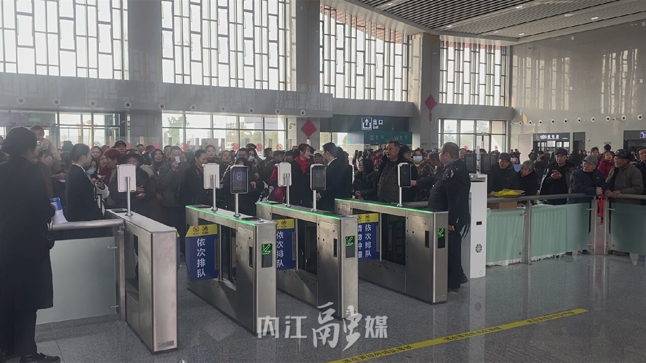 成自宜高铁高速列车首次停靠威远站 乘客坐高铁到蓉城