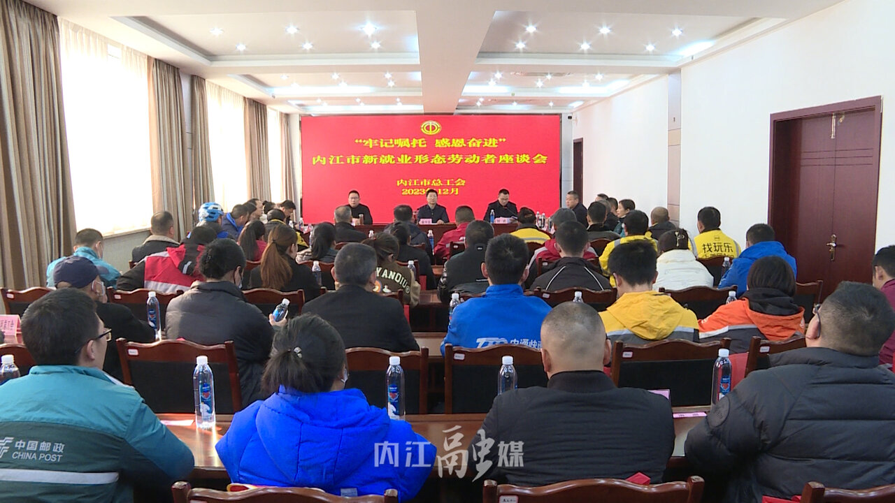 12月26日,内江召开“牢记嘱托 感恩奋进”新就业形态劳动者座谈会,进一步做实新就业形态劳动者群体关心关爱工作。市委常委、宣传部部长、市总工会主席蒋学东出席座谈会并讲话。