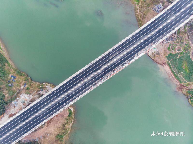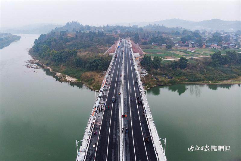 据了解,内江水心坝大桥及连接线起于市中区白马镇门庭路,止于东兴区椑木镇水心坝村,线路全长约1842米,其中主线长720米(桥梁长415米),桥面宽26.5米,线路为双向四车道。