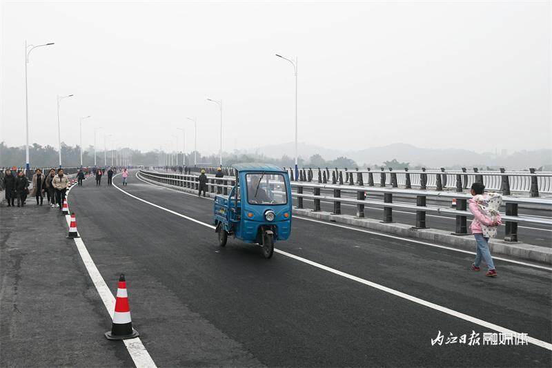 时间:2024-01-10 21:11:30 来源:i内江1月10日,作为内江市重要“渡改桥”民生工程的水心坝大桥建成试通车。不少市民前来见证这一历史时刻,分享大桥试通车的喜悦。