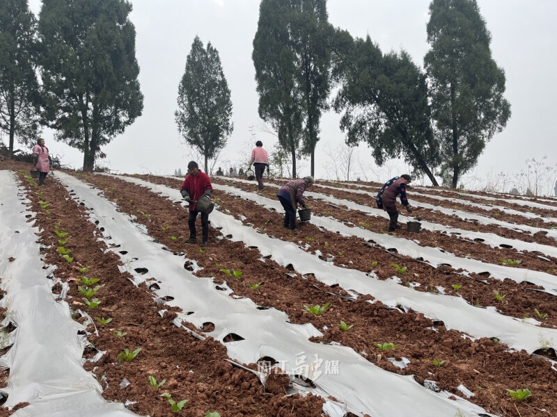 1月10日,记者来到东兴区顺河镇花祠村看到,30余名村民正忙着为刚种下的天冬撒上草木灰,他们手提小桶和勺子,熟练地为每一株天冬“保驾护航”。