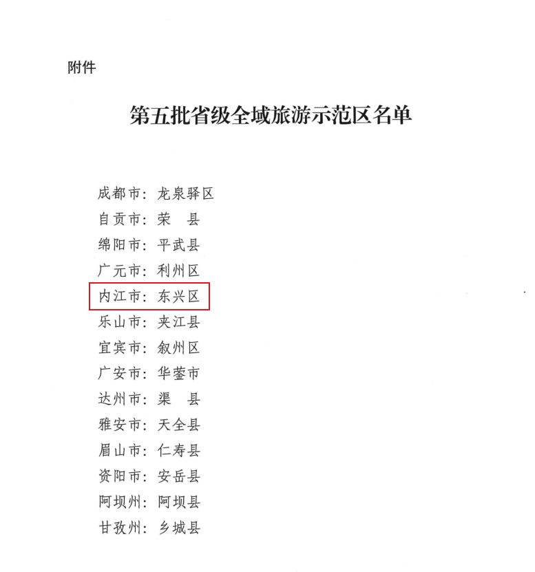 时间:2024-01-11 15:00:12 来源:四川新闻网 东兴融媒近日,记者从四川省文化和旅游厅获悉,四川省文化和旅游厅公布了第五批省级全域旅游示范区名单,共14家单位入选,内江市东兴区名列其中。