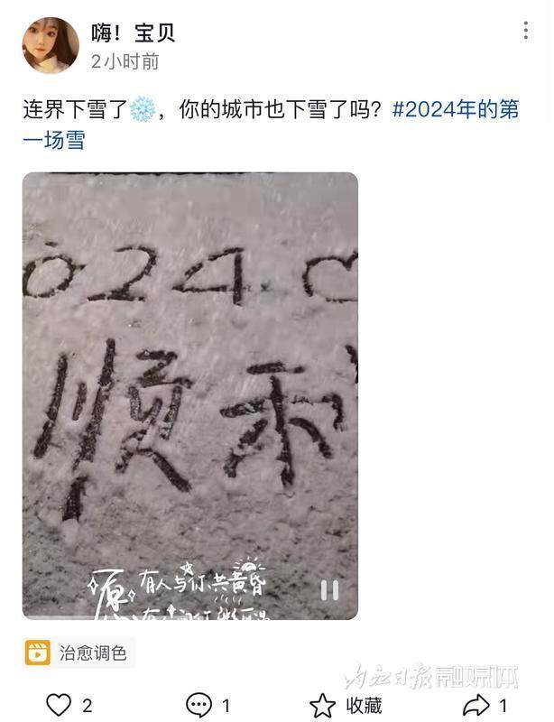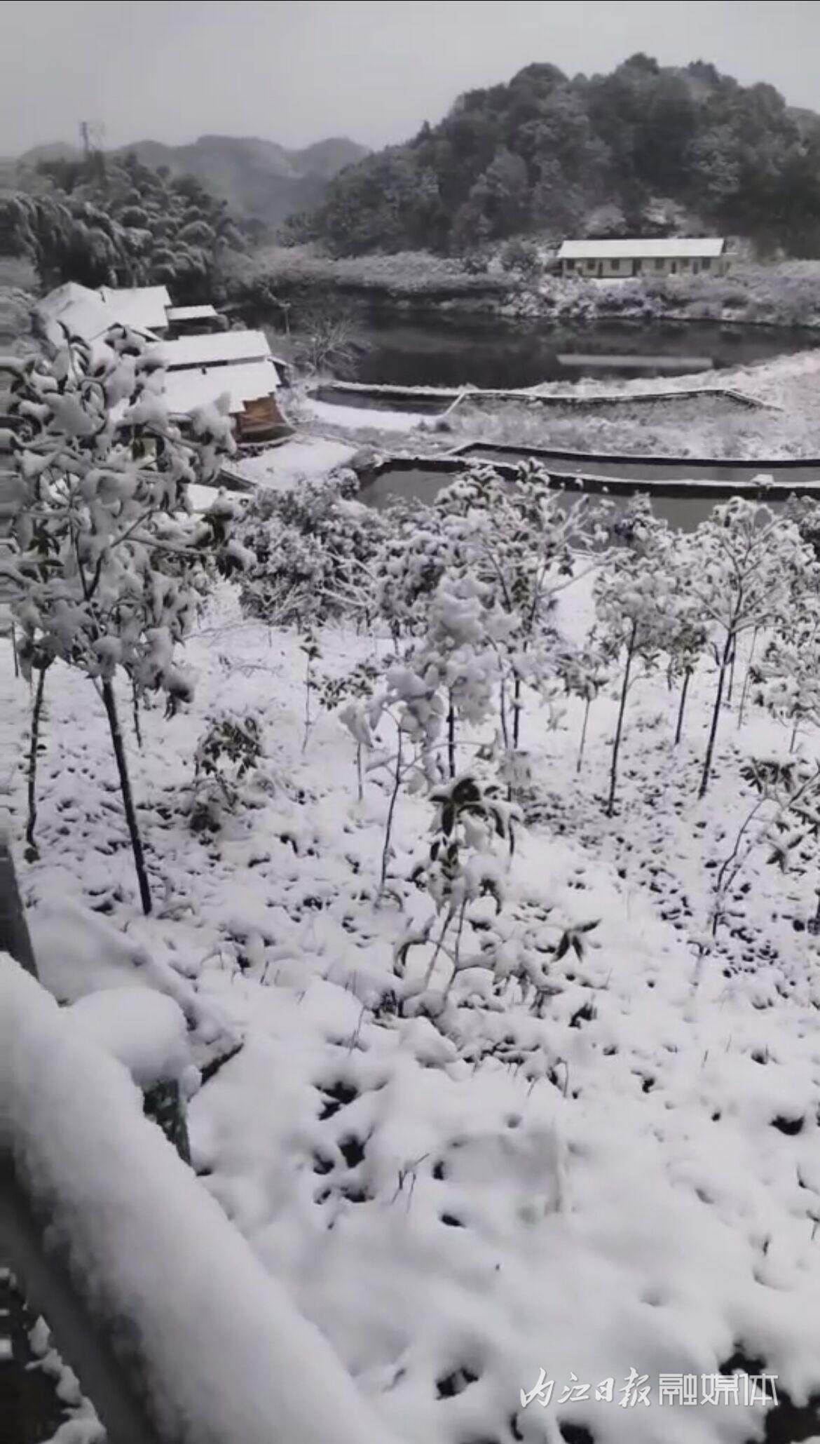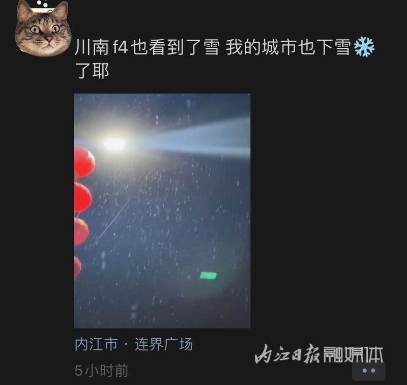 “我的城市也下雪了耶!”连界镇居民刘旭在微信朋友圈分享了看到下雪激动的心情。