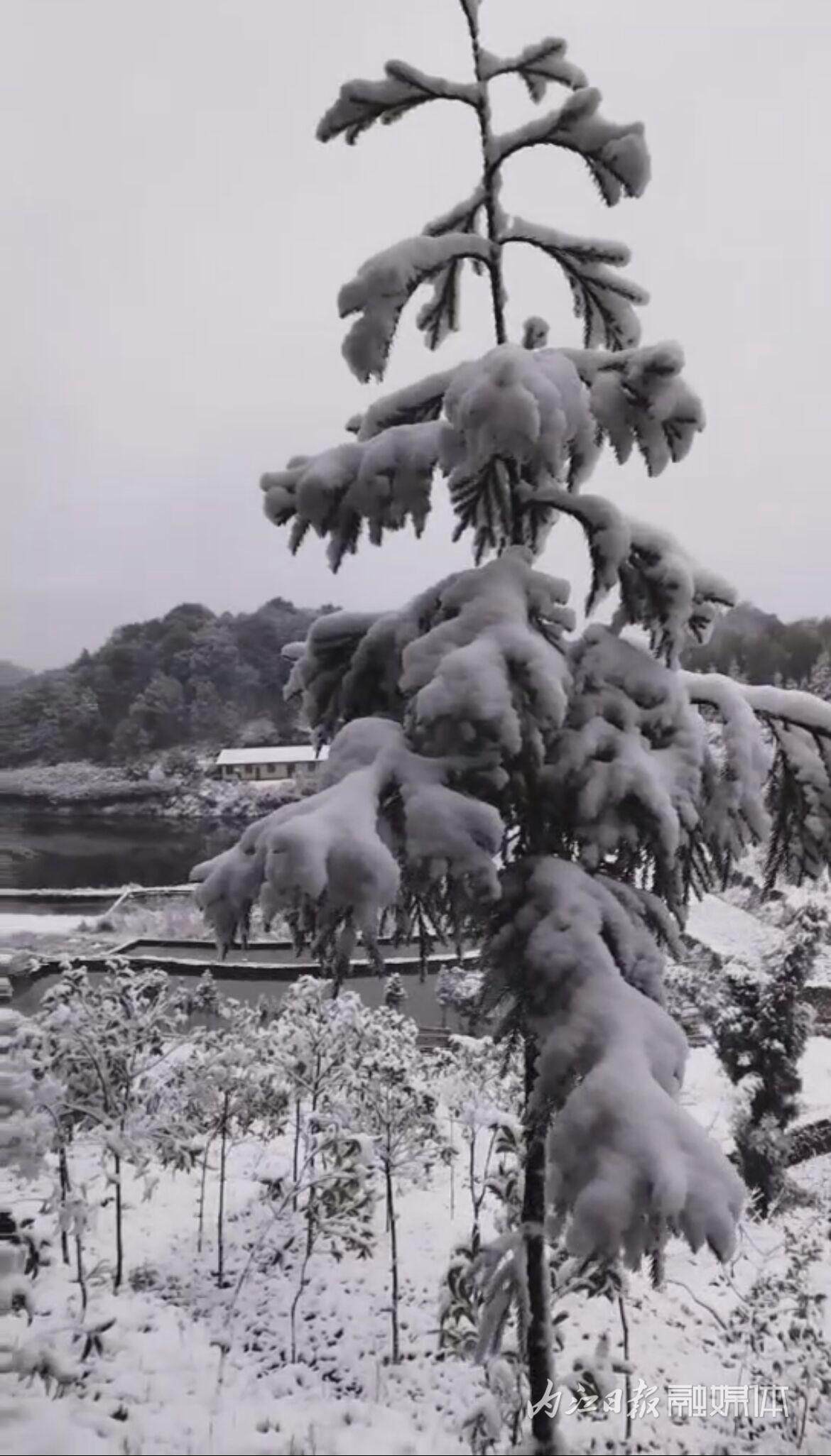位于威远县新场镇的慈菇塘森林公园也下起了小雪。公园地处威远穹窿核心区之一,连绵不断的群山环抱着内江第一峰云头顶,海拔902米,是慈菇塘的最高峰。其特殊的地形地貌造就公园如诗如画的自然景观,这里一年四季格调万千——春看奇花异草,夏观松涛林海,秋览红叶漫坡,冬赏银装素裹,成为众多游客观光游玩的地方。