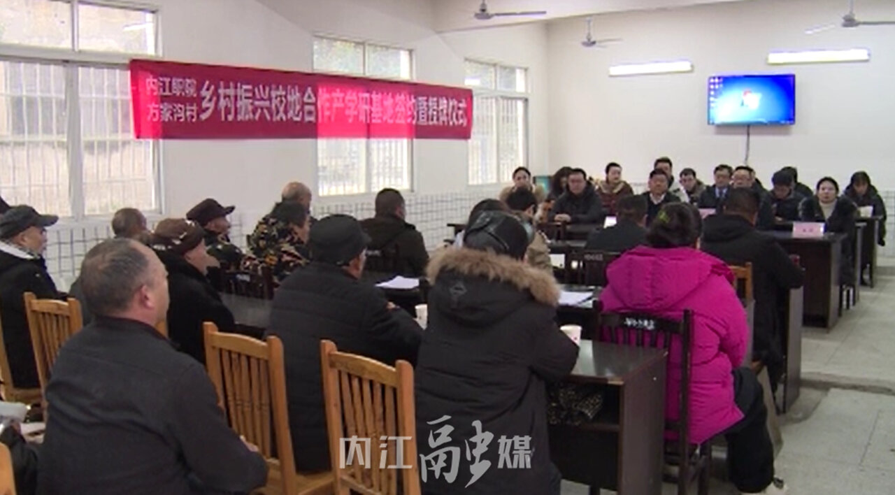 1月24日,内江职业技术学院与东兴区高梁镇方家沟村举行校地合作签约暨授牌仪式。双方将首次联合,瞄准目标,共同谋划,积极探索创建合作共赢的校地合作模式。市政协党组成员、副主席黄俊伟出席仪式并讲话。