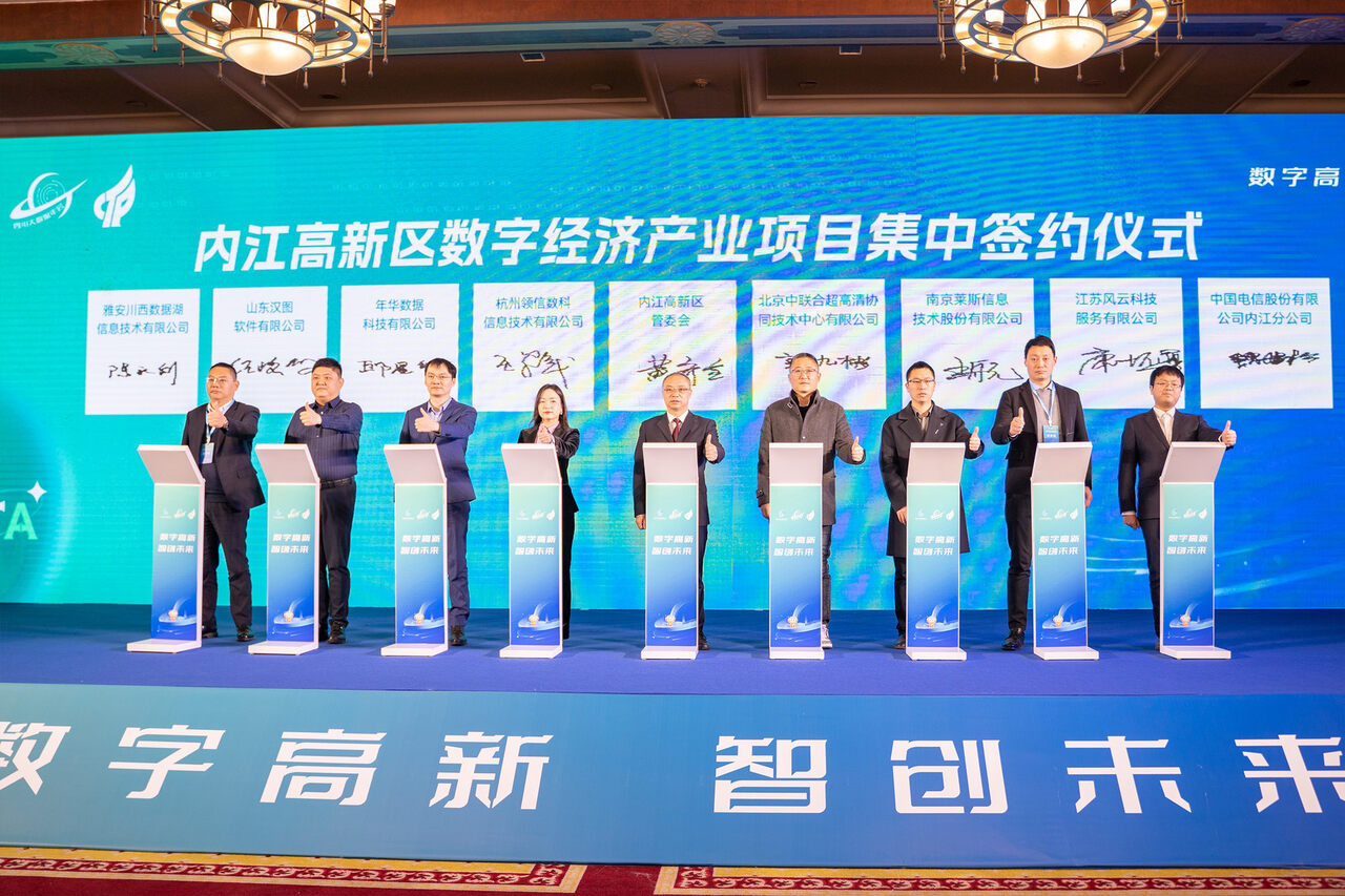 12月15日,内江高新区在成都举行数字经济产业推介会,活动上签约杭州领信、京东方、年华数据等8个数字经济产业项目,涵盖人工智能、智能计算、数字孪生等领域。