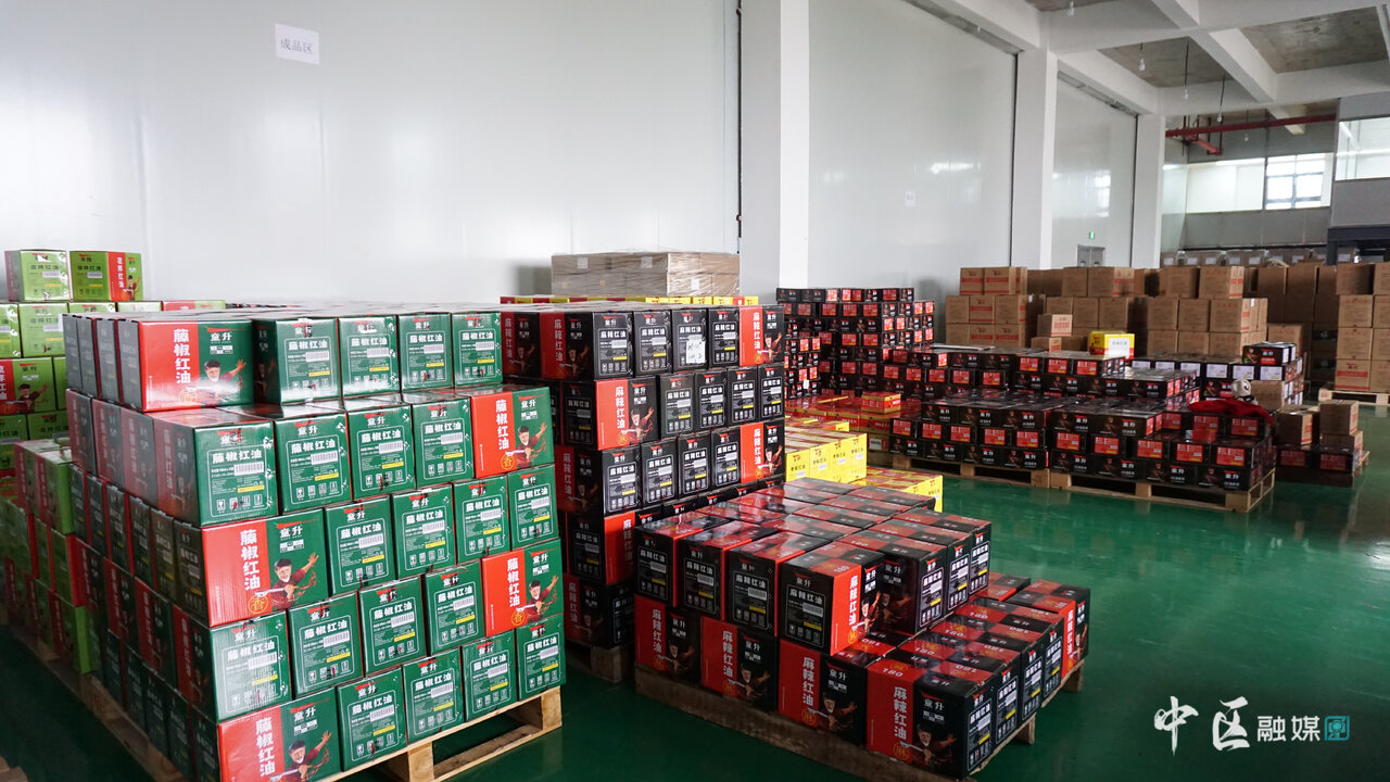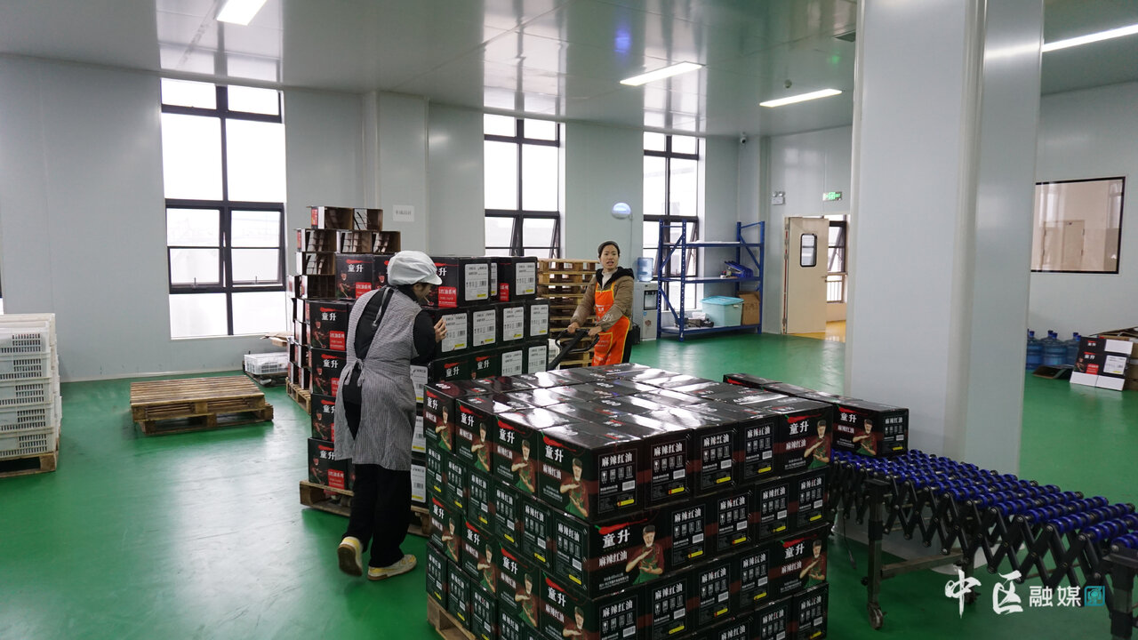 与此同时,在新投入试运行的生产车间里,辣椒油也正在炼制中。“这个是我们新购入的炒锅,辣椒油就是从这里炼制出来的。”该公司办公室主任邹莉指着一台台机器向记者介绍着,“辣椒油炼制好后,就会装到这边的闷罐里,这样会让产品的口味更加浓郁。”春节前后,正是企业的销售旺季。在包装车间里,也是一片繁忙景象。在工人们的巧手下,一箱箱打包好的辣椒油整齐地堆放在一旁,等待着装车,销往全国各地。