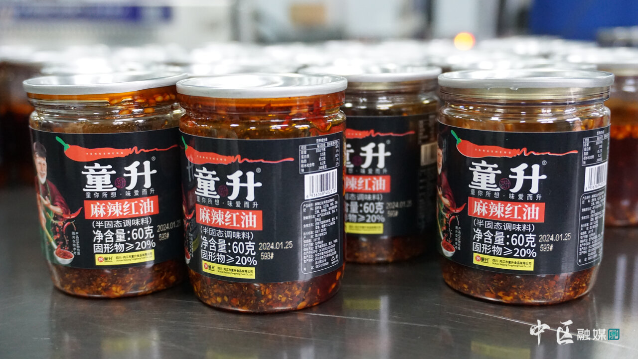 据了解,童升食品有限公司是一家专注红油研发、生产、销售于一体的食品企业,主要产品有红油、辣椒油、辣椒面、芝麻、肘子等。在2022年,该公司入驻内江甜味食品产业园进行项目建设,投资3000万元新建生产厂房及附属用房,目前新建的5条生产线均已投入试产。