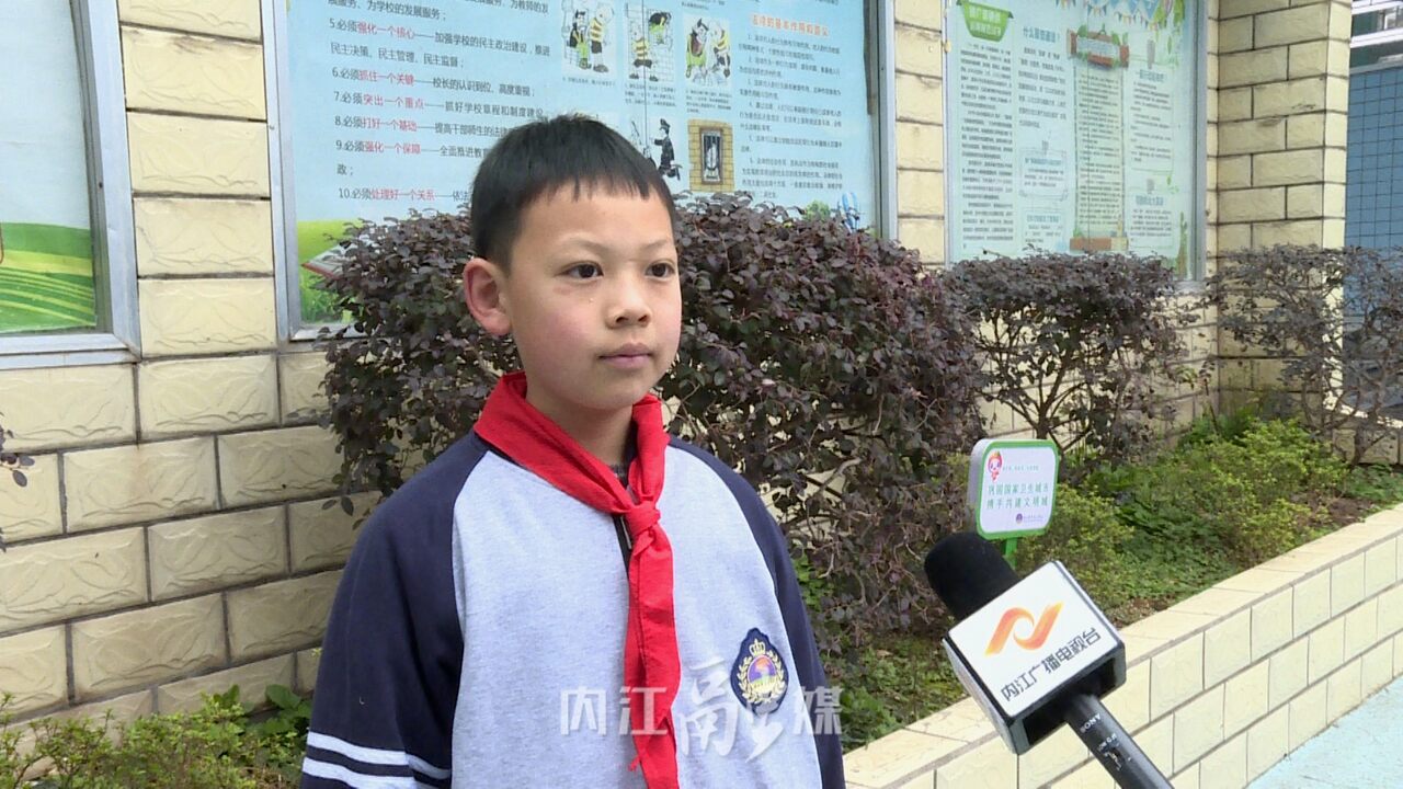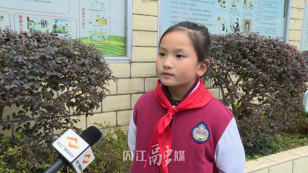 内江市实验小学校少先队员隆可欣:“老师给我们讲了很多安全知识,比如我们不能自己一个人去河边玩耍,不能私自烤火、玩鞭炮,要时时注意安全,保护好自己。 ”