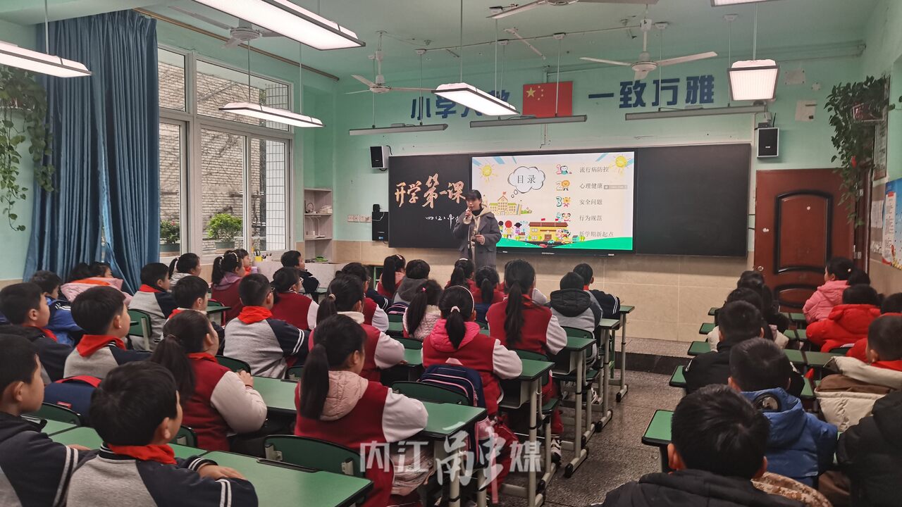 在内江市实验小学校,各少先队中队正有序举行着 “开学第一课”主题队课。中队辅导员从春季流行病防控、心理健康等方面进行了讲解和教育,引导少先队员们热爱生活,珍爱生命,拥有积极的人生态度,始终斗志昂扬,乐观向上。