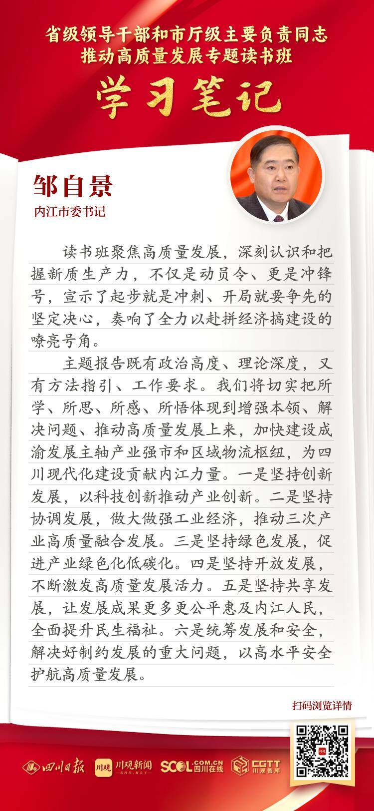 读书班学习笔记丨内江市委书记邹自景:深刻认识和把握新质生产力,奏响全力以赴拼经济搞建设的嘹亮号角
