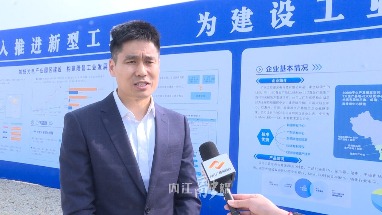 “2024年对我们公司来说是非常关键和重要的一年,从我们的业务发展来看,我们是聚焦在新型的显示产品上面,我们看到24年Mini LED和Micro LED在市场快速放量,也推动了企业投资的步伐会加快,所以我们在内江的光电显示产业园也会在24年开始投入建设,”艾斯谱光电科技有限公司董事长冯先可介绍道,“我们预计一期项目在25年3月建成投产,二期三期将持续落地,今后我们将立足内江依托成渝地区双城经济圈的产业基础,大力发展公司的主营业务,并推动区域的关键产业的发展与内江隆昌共同发展进步。”