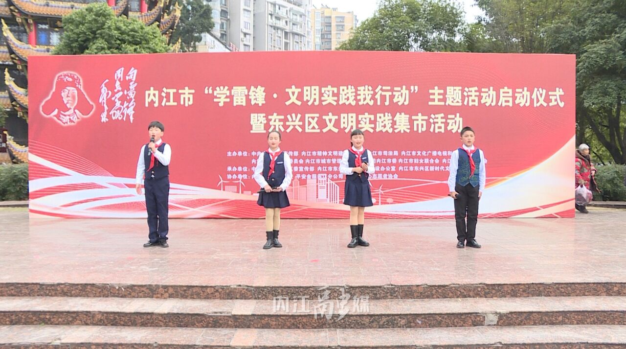在东兴区大佛寺广场,内江市“学雷锋文明实践我行动”主题活动启动仪式暨东兴区文明实践集市活动正火热进行,活动在朗诵《跨越时空的对话》中拉开序幕,随后进行的“创建全国文明城市知识”有奖问答将现场氛围推向高潮,现场群众纷纷举手抢答,一问一答之间,创建全国文明城市的相关知识深入人心。