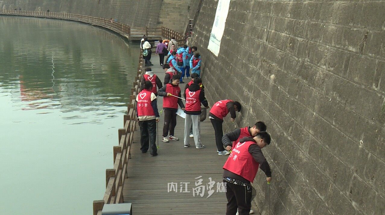 与此同时,共青团内江市委开展了“美丽内江 保护母亲河”净滩行动,青年志愿者们身着红马甲,手握捡拾器,来到了沱江河岸亲水步道,清理地面纸屑、烟头、塑料袋等垃圾,并沿途开展保护环境、垃圾分类等知识宣传。