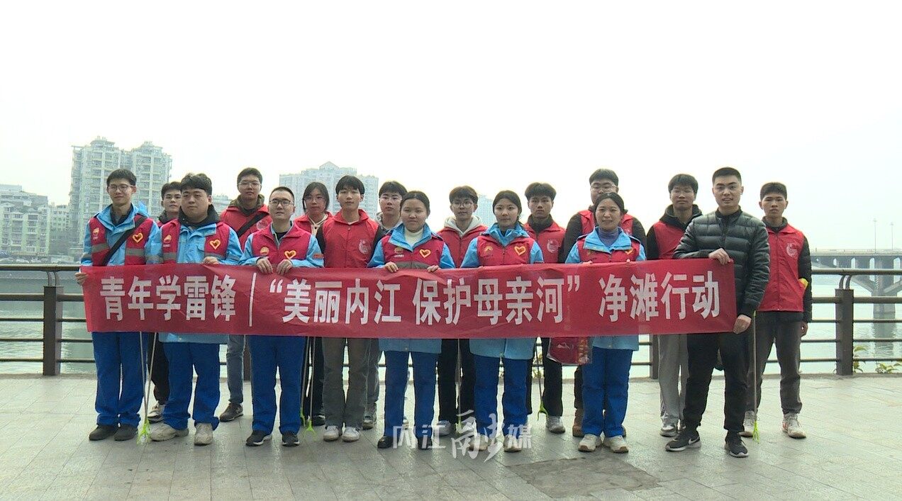 ▲共青团内江市委开展“美丽内江 保护母亲河”净滩行动