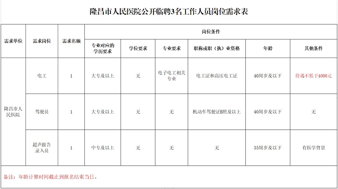 因工作需要,现面向社会公开临聘3名工作人员。