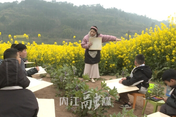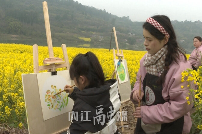 阳春三月,草长莺飞、花红柳绿,正是感受自然、亲近自然的大好时光。近日,东兴区椑木镇建设村及周边的连片油菜花竞相绽放,吸引了一群走出教室写生的孩子们来感受春光、手绘春天。