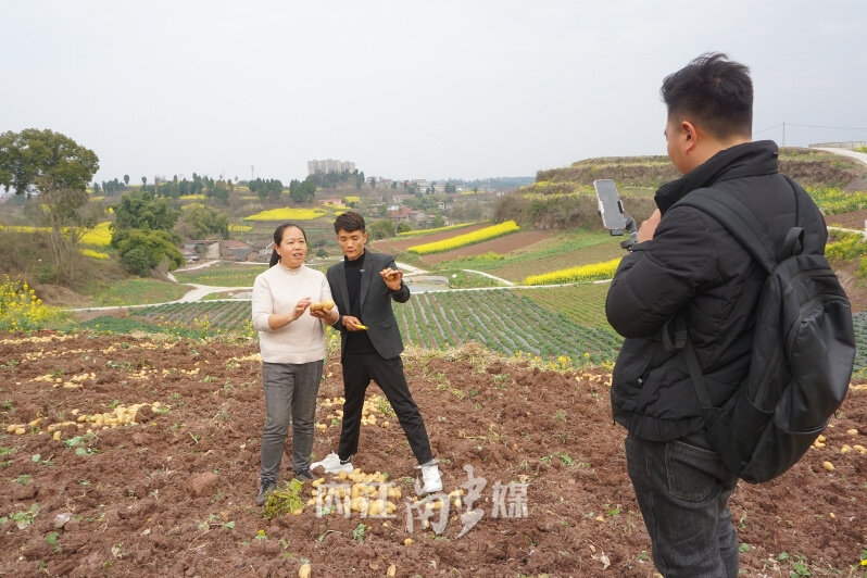 近日,记者走进史家镇方田村,只见村民们正抢抓晴好天气,有条不紊地收挖马铃薯,一个个个头饱满、匀称的马铃薯破土而出,金黄鲜嫩,煞是喜人,村民们分工协作,熟练地分拣、装袋、打包......忙的不亦乐乎。而在一旁,方田村党总支书记、主任张友美和主播现场进行网络直播带货,向直播间的网友展示新鲜粉糯的马铃薯,并不时互动交流,在提高方田村马铃薯知名度的同时,也进一步拓宽了销售渠道。