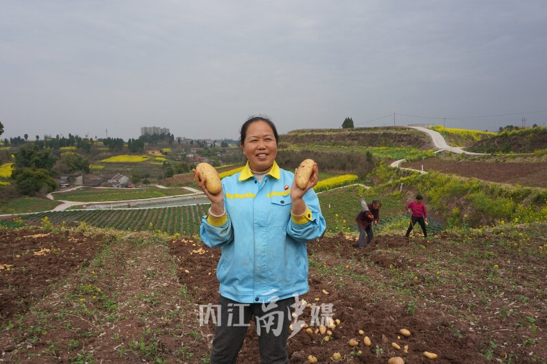 方田村党总支书记、主任张友美:"去年我们村集体通过撂荒地开垦土地,试种了几亩土豆,品质很好,受到周边客户的青睐。今年,我们又继续种植了土豆50余亩,亩产量在2000斤左右,按目前的市场价,预计村集体收入将达10万元。"