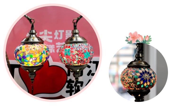 “土耳其灯”的历史,可追溯到5000年以前。其最初使用陶瓷和金属等原材料,被摆放在伊斯坦布尔的浴室、清真寺等处。后随着时间的演变,“土耳其灯”逐渐被彩色的小玻璃所覆盖。因其色彩斑斓、明艳华美如同置身童话世界,在奥斯曼帝国时期风靡世界,亦形成了现在当地家中常见的马赛克手工灯。