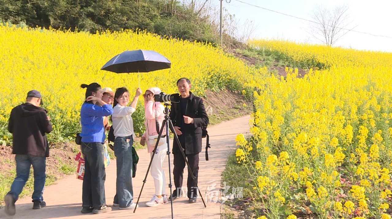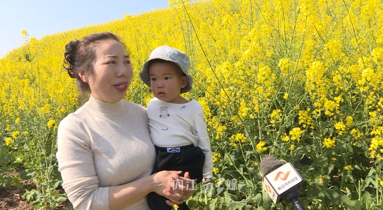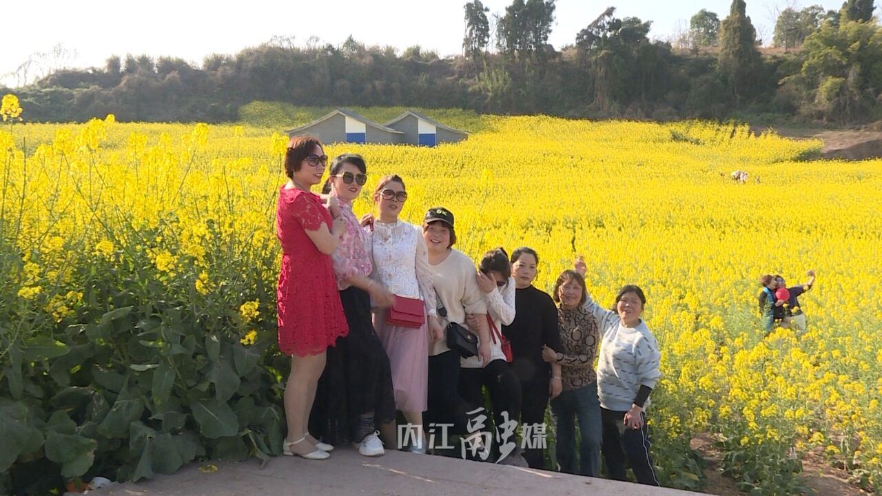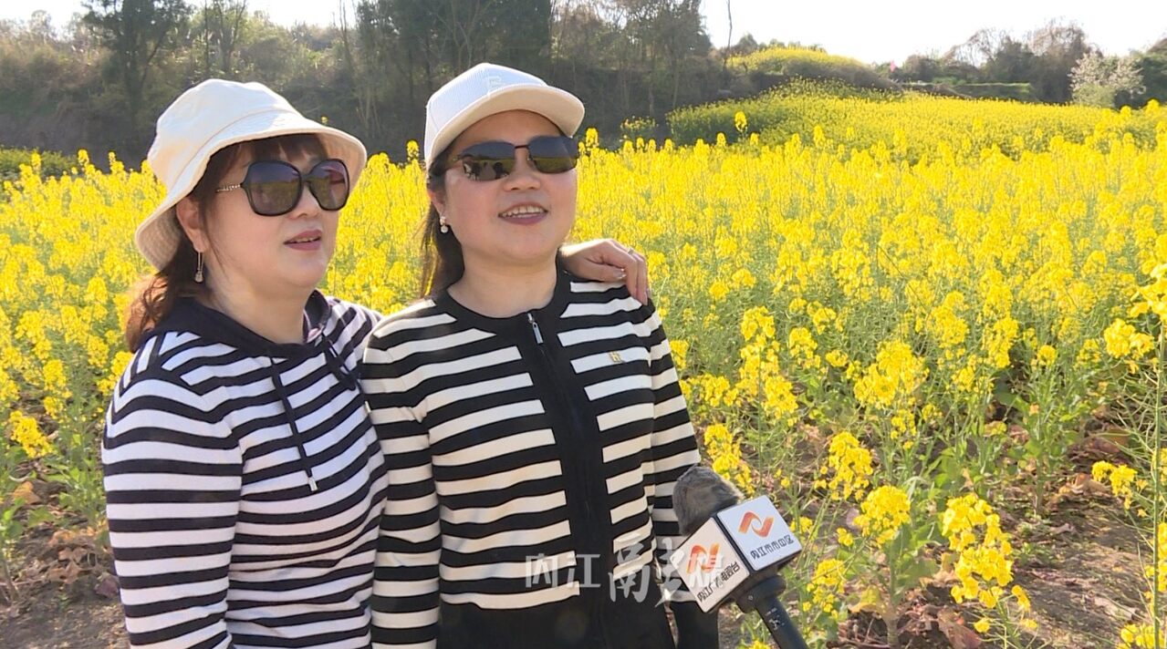 游客兰丽告诉记者:“今天天气好,我就约到好姐妹来这里玩,这里的油菜花真的很漂亮,到处金灿灿的,是一个拍照、拍抖音、游玩的好地方。”
