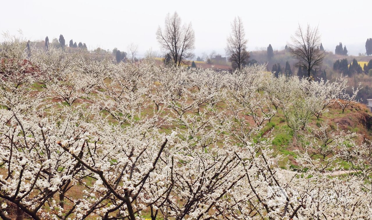 近日,内江市东兴区椑木镇红林村李子采摘园里迎来了李花的盛开,给这个春日增加了无尽的生机与活力。