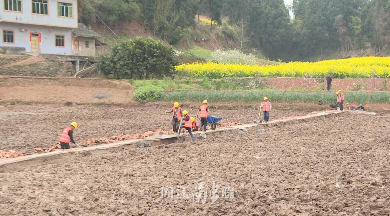 据悉,该社区已建成1320余亩高标准农田,根据季节不同,将种植水稻、小麦、玉米及紫皮大蒜、辣椒、番茄等时令蔬菜。目前已累计种植第一季鲜食玉米190余亩,预计5月采摘上市,并间种第二季玉米。与此同时,田家镇双坝村的高标准农田建设也在推进之中,十余名施工人员正在运送水泥、砖头,夯筑硬化田埂,修建灌溉蓄水池和沟渠,现场一派繁忙景象。