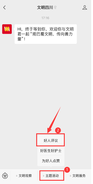 2、在公众号菜单栏选择“好人评议”