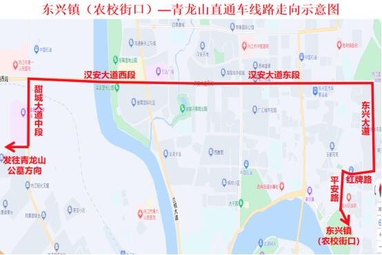 二、运行线路:东兴镇(农校街口)-红牌路-东兴大道-汉安大道-甜城大道-邱家山-寿溪桥-大田坎-砖厂-三墩铺-青龙山。(原路返回)