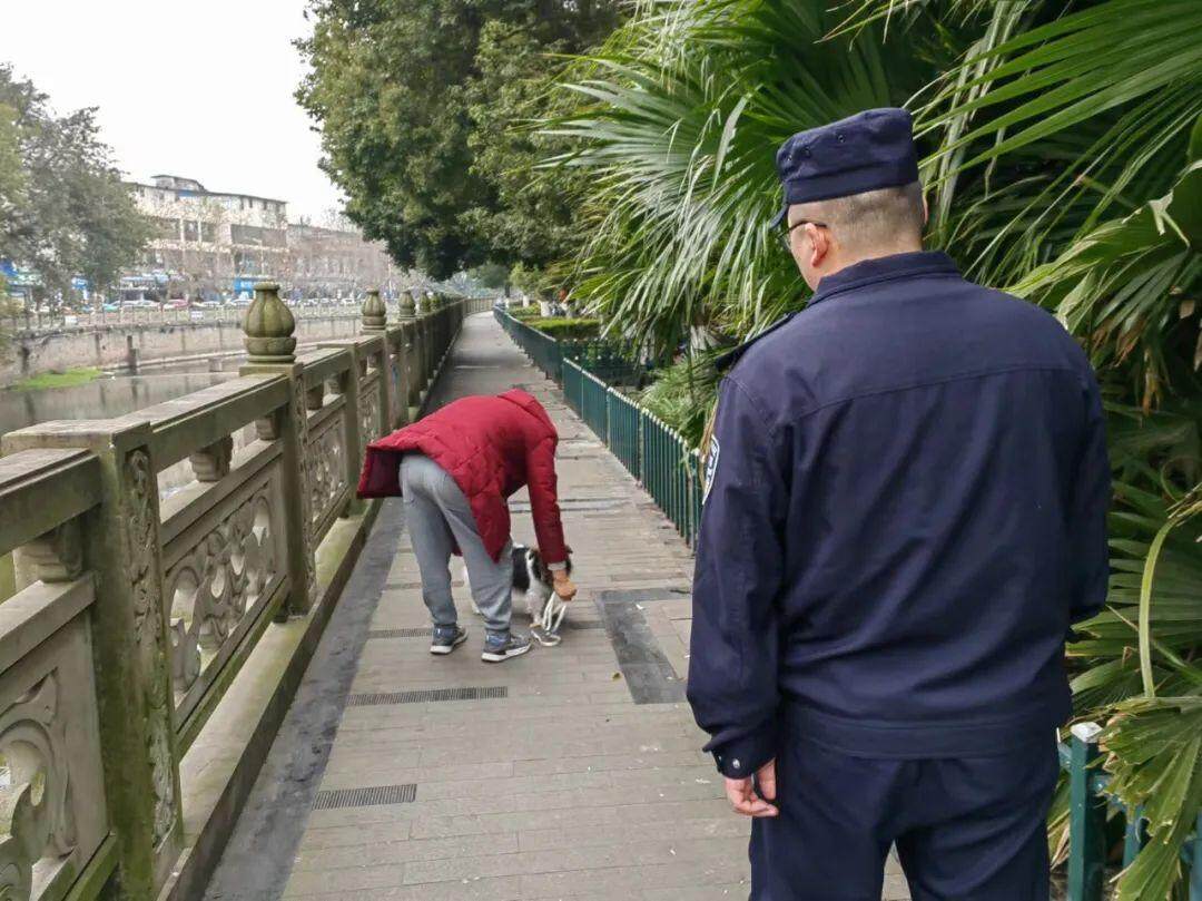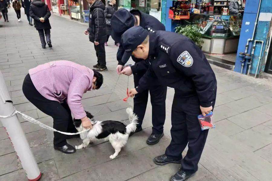 民辅警深入城区主次干道、商业大街、公园、广场、景区等重点区域进行文明养犬管控,排查犬只登记情况,劝导不文明养犬行为,对无主犬只、流浪犬只进行网捕,移交指定犬只收容场所,消除群众身边“犬患”问题。