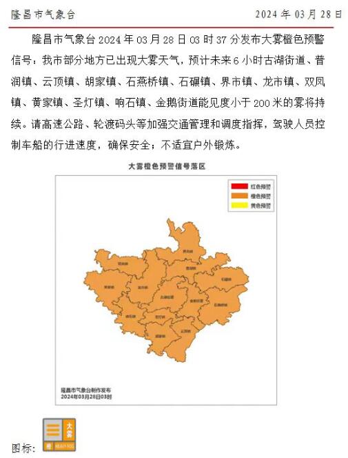 内江市气象台2024年03月28日06时22分发布大雾短时临近天气预报: