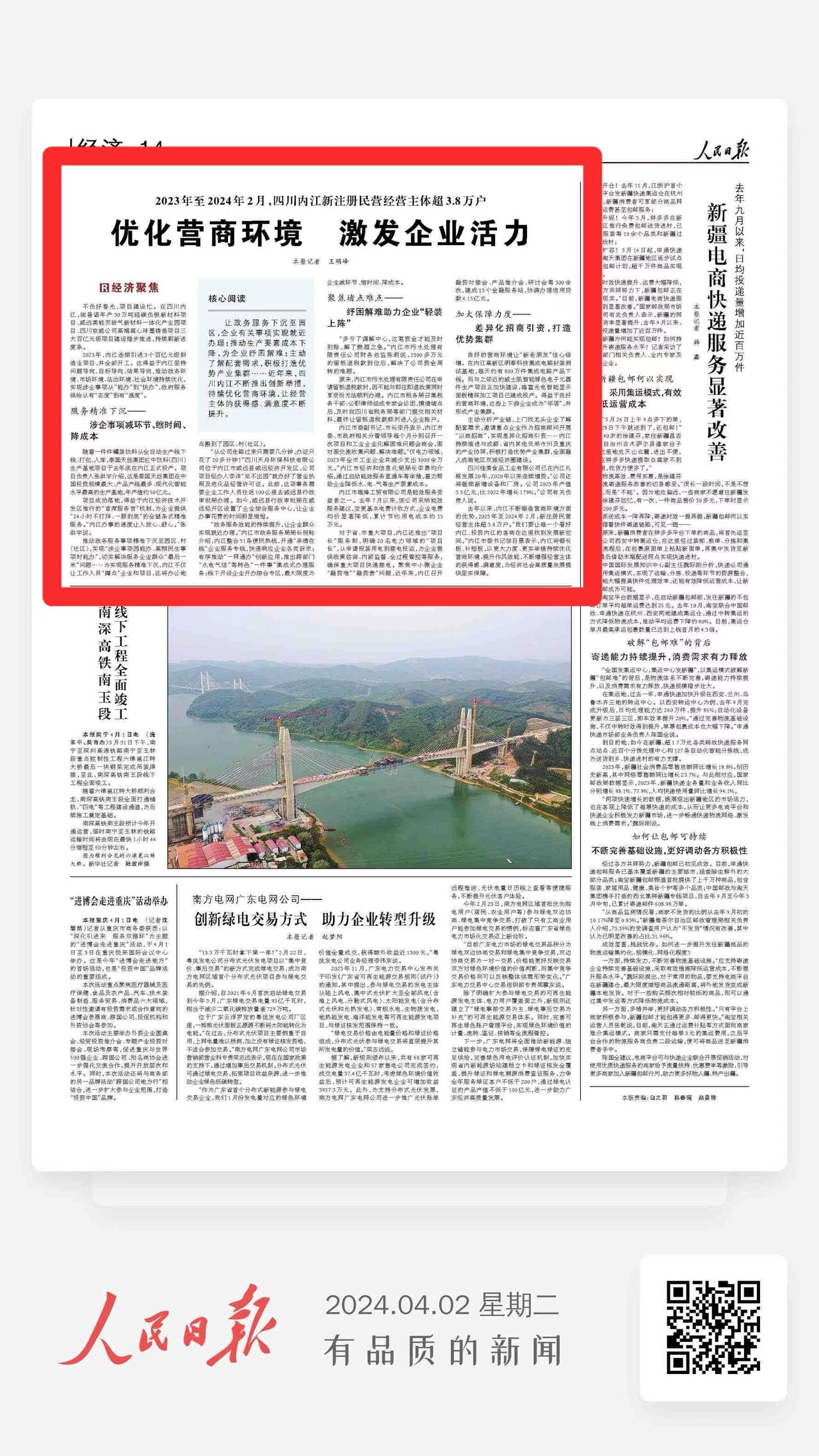 人民日报聚焦内江:优化营商环境 激发企业活力