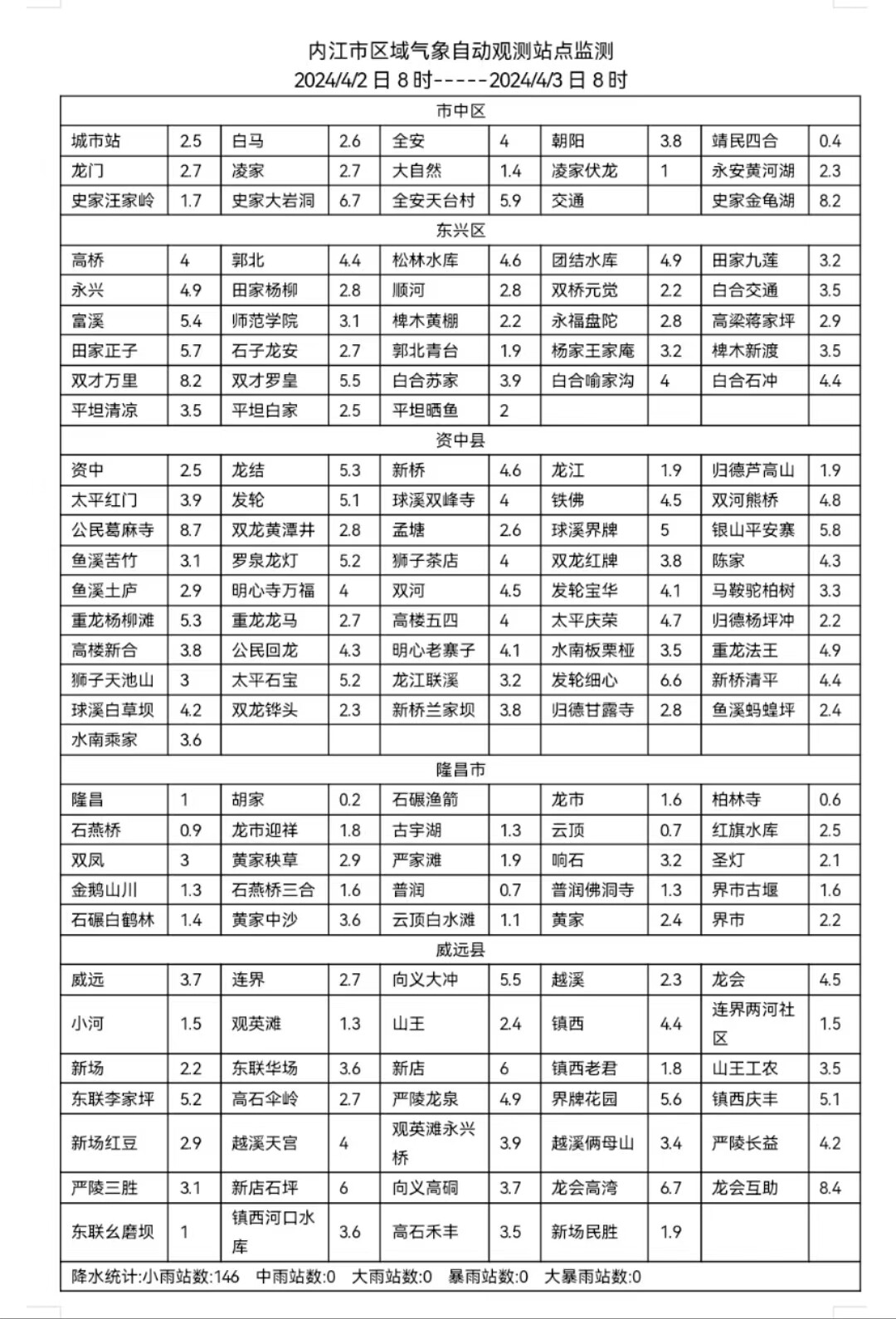 时间:2024-04-03 08:45:06 来源:内江市气象台刚刚,内江市气象台发布雨情通报及未来天气趋势预报,详情如下。