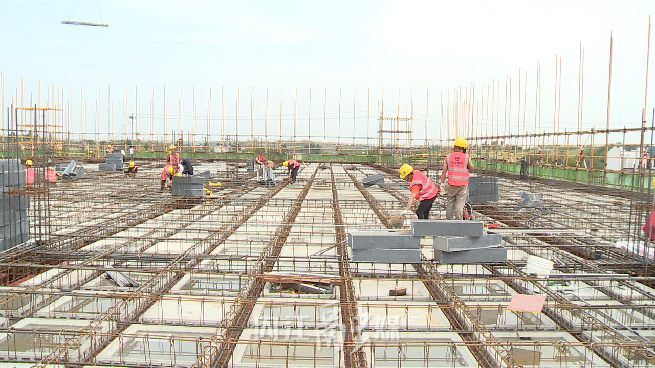走进位于凌家镇的内江甜味食品产业园区标准化厂房项目施工现场,机器轰鸣声震耳欲聋,塔吊来回运输建筑材料,工人们各司其职,操作设备、绑扎钢筋、安装空心板、布设烟感器等,建设现场忙而有序。