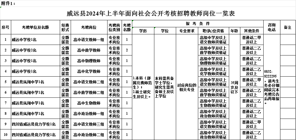 按照公开、平等、竞争、择优原则,威远县面向社会公开考核招聘教师11名。