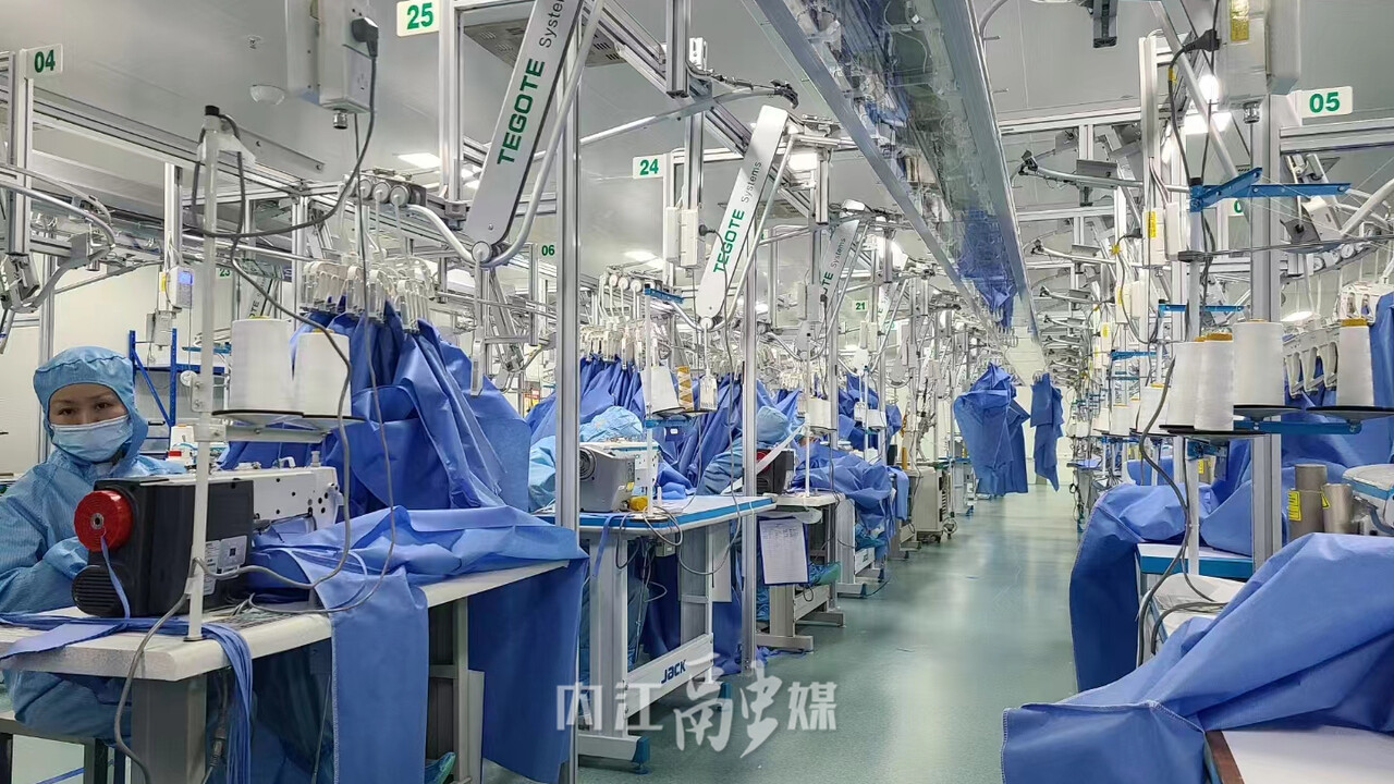 目前,公司已投产口罩、手术单、垫单、手术衣等6条生产线,客户覆盖全市120多家医疗机构,在经历由“高衣定制”到医药产品“内江造”的“四次转型”后,成功跻身为我市规模最大的医疗耗材生产制造企业,实现质的跨越。