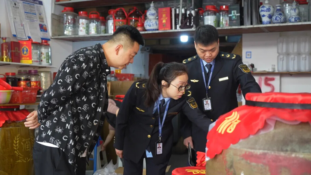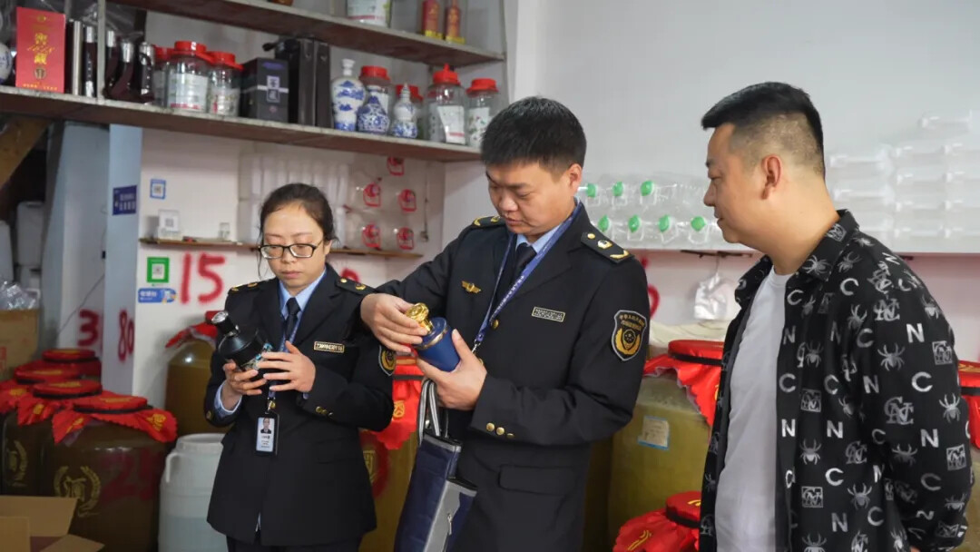 商家罗盛东:“以前我们没得手续就在生产小灶酒,现在给我们关了,我们没得意见。现在我们还是想继续搞这个白酒行业,市场监管局的同志就来帮助我们,给我们专业的规划和建议,我相信只要我们合法合规的生产经营,我们白酒生意就会越做越好。”