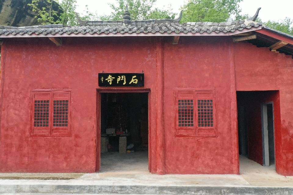 4月11日上午,连续多日的阴雨天后,内江迎来了阳光明媚的好天气。驱车沿着蜿蜒曲折的乡村小道行驶,在一个山脚突然停下,石门寺便“隐藏”在一片油菜丛中,一条青石板路连接村道。