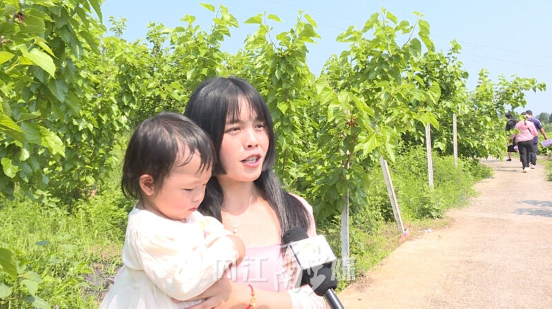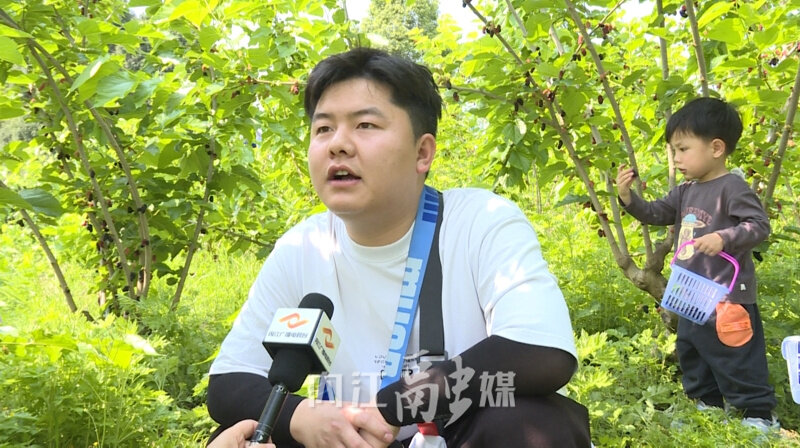 游客付志强表示,“今天我们带着小朋友来摘桑葚、看风景,小朋友吃得很开心,也耍得很快心,我们自己摘桑葚,感觉就像回到了小时候一样,主要是带小朋友来看一下,感受一下我们小时候摘桑葚的感觉”。