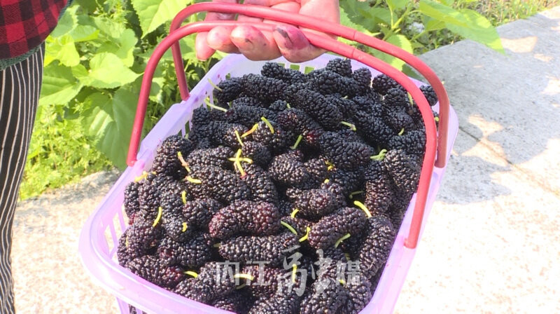 游客李小玲告诉记者,“因为就是朋友介绍的,这边桑葚也是无公害的,桑葚很好吃,又很大,这次带奶奶过来也有摘,摘得满满的一兜兜”。