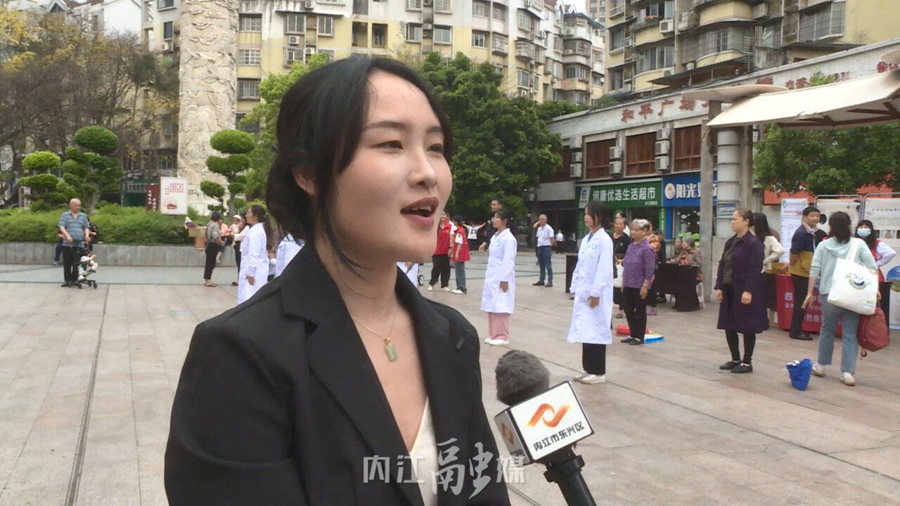 居民曾子香:“我今天来感觉到很高兴,我今天出来耍,碰到他们正在搞活动,查血压,我去查了。然后他们还有锻炼身体的八段锦,我也来跟到学了,感觉一身多舒服,锻炼自己身体,觉得多可以。”