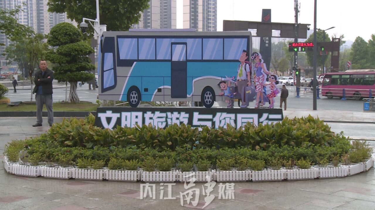 据内江路桥客运经营管理有限公司 工作人员 李默岚介绍:”我们在北站前广场设置了公益广告和文明旅游出行展板等;同时安排了文明劝导员劝阻各类不文明行为,并及时清运垃圾,为旅客营造文明有序的出行环境“。