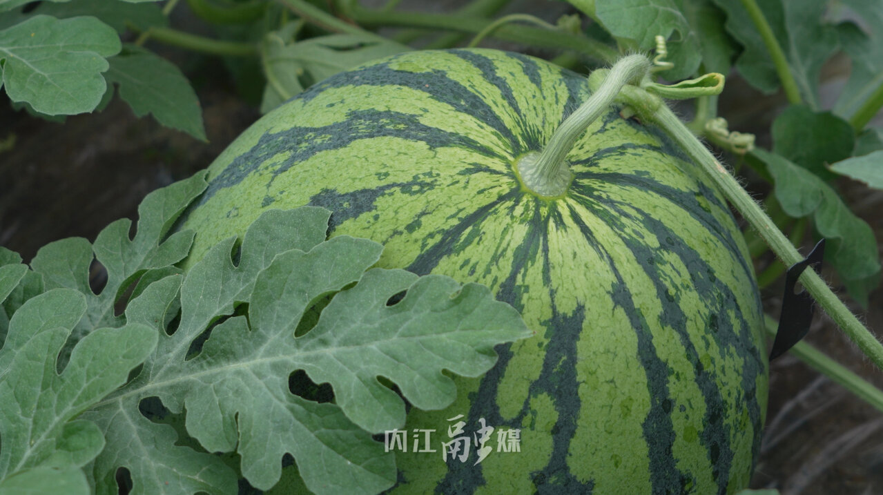 又到了一年里吃西瓜的季节。近日,东兴区郭北镇的头茬西瓜陆续成熟上市。走进位于郭北镇长坝村集农种植专业合作社的西瓜大棚,绿油油的瓜藤爬满一地,一个个浑圆饱满的西瓜掩映在藤叶之中,长势喜人。瓜农邓刚正在查看西瓜的长势情况并为其顺藤疏果,已经有20多年种植经验的他,轻轻一敲便能知道西瓜的成熟度。