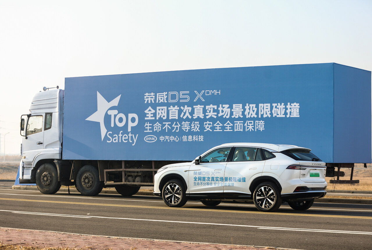荣威D5X DMH还致力于以更高安全为用户出行保驾护航:采用新一代超高强度笼式车身,同级最高的79%高强度钢占比和44%超高强度钢占比,5倍车重抗压设计,加上同级罕见的双侧小偏置结构设计,三次成功挑战中汽研“极致安全碰撞测试”,为全车乘员提供同等保护。