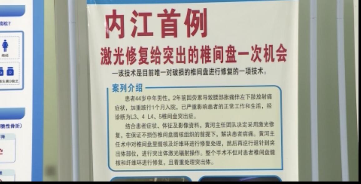 截至目前,内江市中医医院已成功完成102台椎间盘激光修复手术,该技术的成功开展,也对推动内江市脊柱外科全面发展具有重要意义。