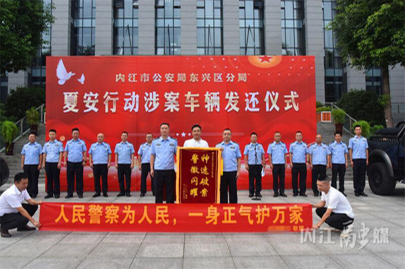 7月17日,内江市公安局东兴区分局举行“夏安行动”涉案车辆发还仪式,现场将在之前侦破的一起案件中,追回的两辆豪华轿车依法归还给受害人,累计挽回损失200余万元。