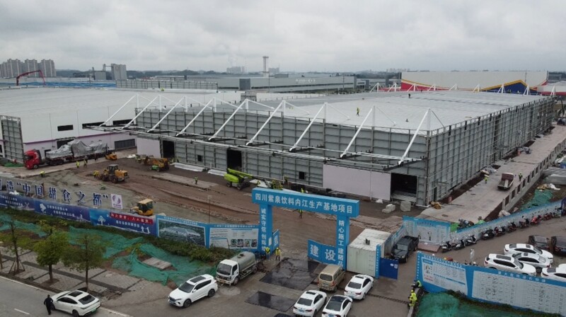 近日,记者在位于内江经开区的四川紫泉饮料内江生产基地项目建设现场看到,一栋栋厂房拔地而起,工人们正加紧进行生产设备安装以及厂区配套基础设施收尾建设,为如期交付加劲加力。据悉,项目于今年7月进场施工,目前已完成总体进度的90%,预计在明年1月建成投产。从项目签约落地到开工建设,高效快捷、真诚务实的“保姆式”服务让项目顺利推进。