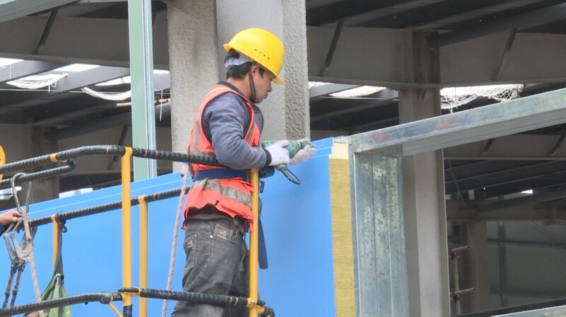 与此同时,在内江高新区白马园区,IGBT模块材料和封测模组产业园项目也是一派奋进的施工场景。260余名工人分布在各个施工区域,进行厂房屋面、墙面等安装作业,全力以赴抢工期、赶进度。